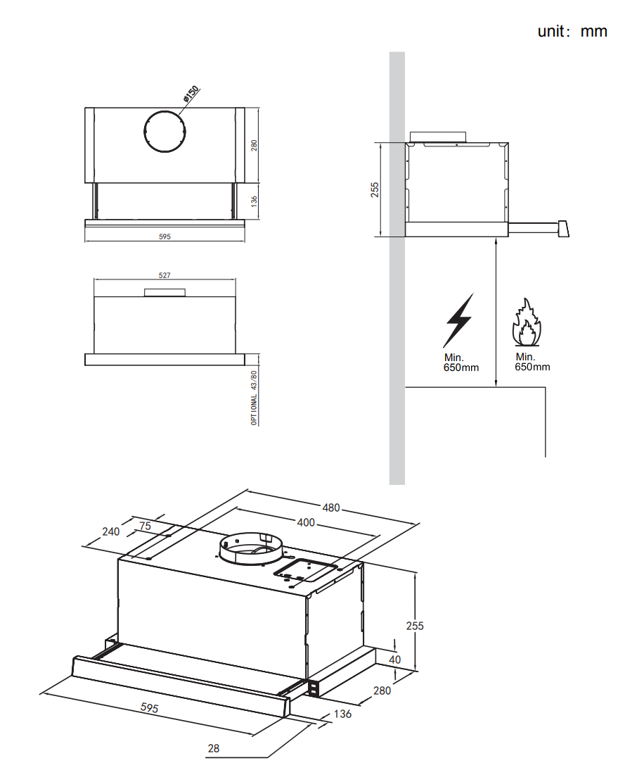 Stainless St 60cm Slide Hood a/flow: 600m3/h 595*308*255 NEW MODEL SEE SPECS